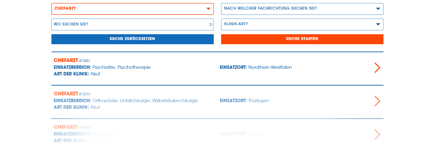 Stöbern Sie in Ruhe in unseren vielfältigen Stellenangeboten für Chefärzte. Ihr Traumjob könnte nur wenige Klicks entfernt sein. Wenn Sie in unserem Stellenmarkt passende Angebote gefunden haben, kontaktieren Sie uns einfach und dann übernehmen wir!