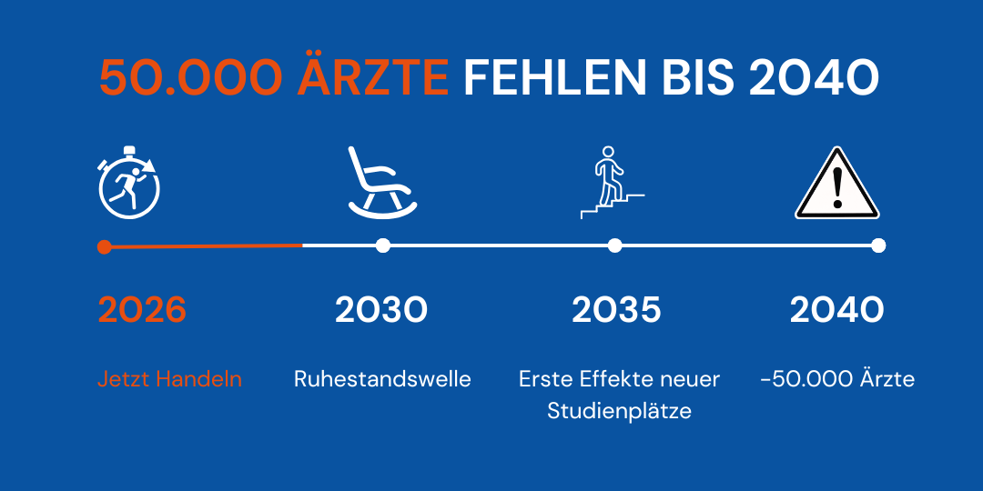 Das Zentralinstitut für die kassenärztliche Versorgung (Zi) hat im Februar 2024 eine aktualisierte Bedarfsprojektion veröffentlicht, deren Kernaussage an Deutlichkeit wenig zu wünschen übrig lässt: Bis zum Jahr 2040 werden in Deutschland kumuliert rund 50.000 Ärzte fehlen, um das heutige Versorgungsniveau für die 73 Millionen gesetzlich Versicherten aufrechtzuerhalten. Jährlich fehlen durchschnittlich fast 2.500 ärztliche Nachbesetzungen. Der Nachbesetzungsbedarf im niedergelassenen Bereich liegt bis 2030 bei jährlich 8.000 bis 9.000 Köpfen.