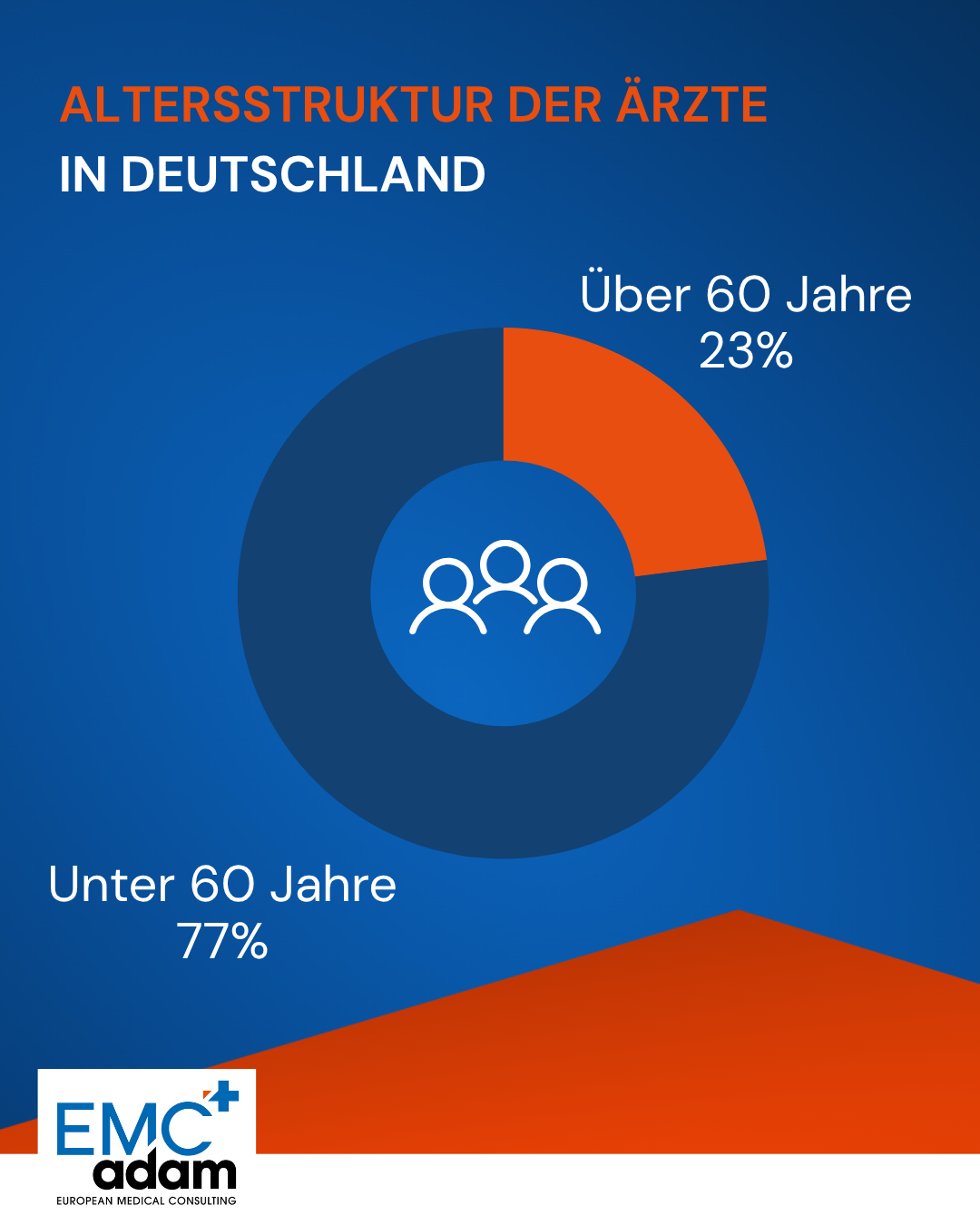 Laut der aktuellen Ärztestatistik der Bundesärztekammer (BÄK) waren Ende 2024 rund 437.000 Ärzte in Deutschland berufstätig. Auf den ersten Blick klingt das nach einer stabilen Versorgungslage. Doch ein Blick in die Altersstruktur zeigt, wie trügerisch diese Zahl ist, denn 23 Prozent aller berufstätigen Ärzte, also fast jeder vierte Mediziner, haben bereits das 60. Lebensjahr überschritten. Die Jahrgangsstärke in der Altersgruppe der 60- bis 65-Jährigen beträgt laut BÄK rund 10.000 Personen pro Jahrgang, die in naher Zukunft in den Ruhestand eintreten werden.
